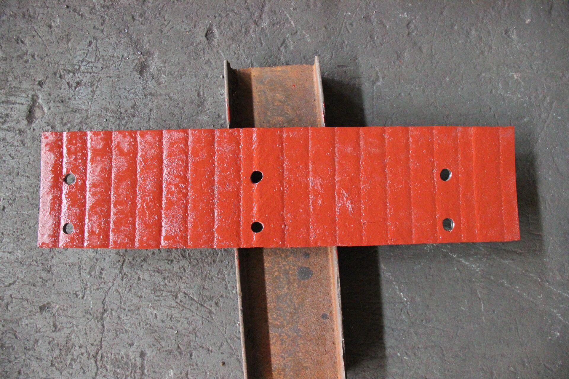 雙金屬鋼板的合金層的化學(xué)成分中碳含量達(dá)4~5%,鉻含量高達(dá)25~30%,其金相組織中Cr7C3碳化物的體積分?jǐn)?shù)達(dá)到50%以上,宏觀硬度為HRC56~62,雙金屬鋼板微觀碳化鉻的硬度為HV1400~1800,高于沙石中石英的硬度HV800~1200。由于碳化物成于磨損方向相垂直分布,即使與同成分和硬度的鑄造合金相比較,耐磨性能提高一倍以上。 與幾種典型的鋼材耐磨性對(duì)比如下: